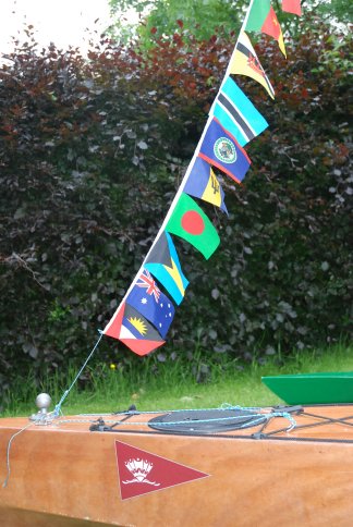 Our boat with pageant flag and decorated with flags of the Commonwealth